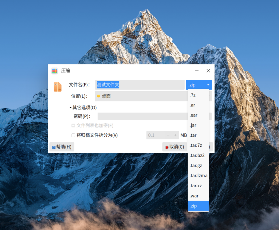 DESK软件支持的压缩类型和麒麟统信相比,不支持lz和bz2(说实话这两种格式笔者没有用过),其他都支持。