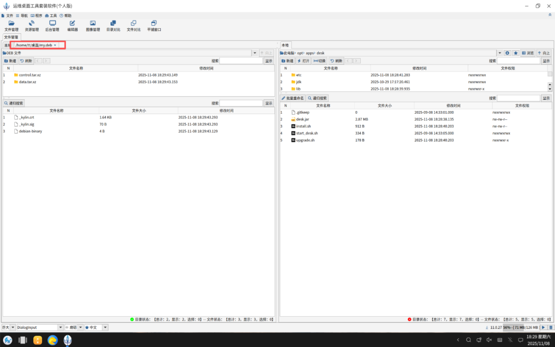DESK浏览到deb文件,可以通过双击把deb文件打开,打开后使用方式和其他压缩文件相同。这个功能非常有用,后续笔者会单独写文章进行描述。