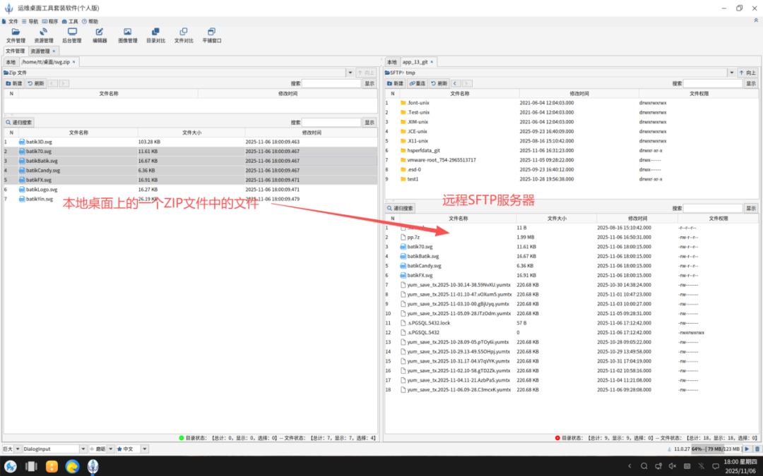 使用DESK可以把ZIP中的文件直接拖拽到远程SFTP服务器上,如下图所示: