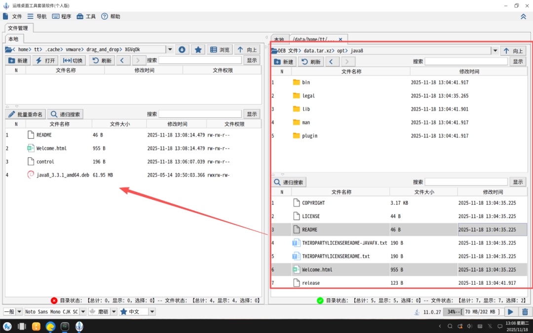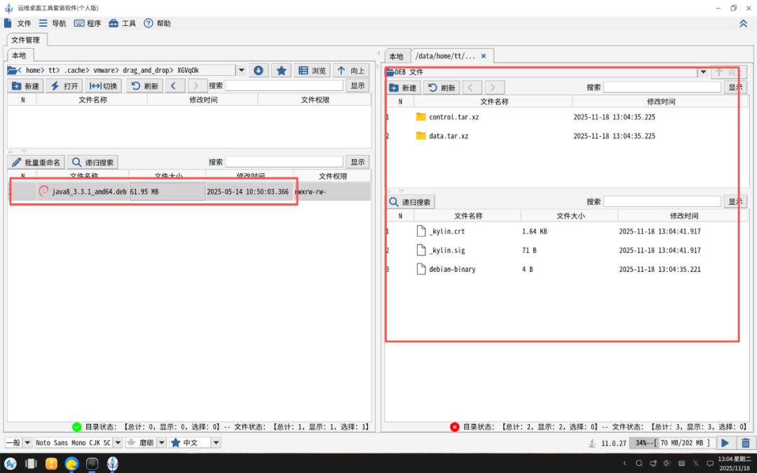 看看DESK打开deb文件的正确姿势。左边双击deb文件,右边为打开后的deb文件内容。