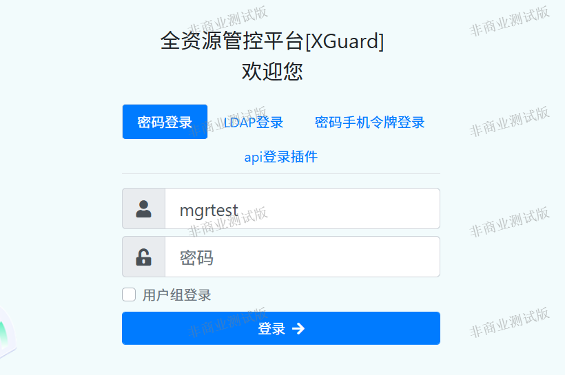XGuard是政企单位的一站式资源安全管控平台,通过XGuard可以实现对客户各种数据库、服务器、客户端、网络交换设备等全IT资源的安全管控。作为一站式管理平台产品,XGuard产品的登录方式也能满足不同用户的需求,通过系统管理员角色可以配置4种登录方式,包括密码登录、LDAP登录、密码手机令牌登录、API登录插件。