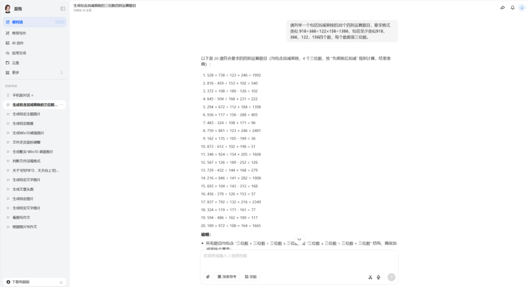 实践出真知咱们先来做几个测试。我先把测试结果告诉大家,混元和豆包的四则运算考试都不及格。