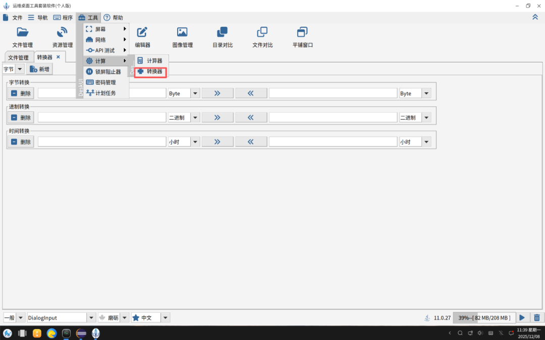 求人不如求己,用DESK的转换器吧。先去https://www.deskui.com 官网下载一个最新版本。然后无论是windows还是linux操作系统下,都点击工具菜单的转换器子菜单,系统会自动弹出三种最常用的程序员转换器,如下图所示: