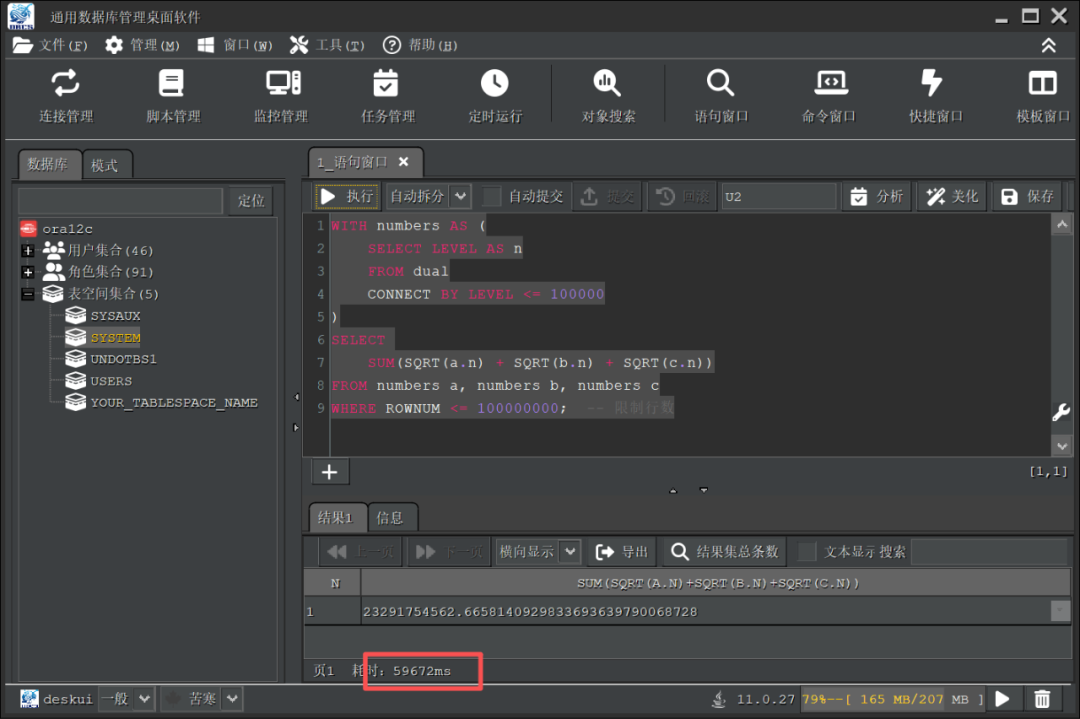 再举个时间的例子,我输入一个SQL,结果运行了59672毫秒。大家是否有感到很困惑?