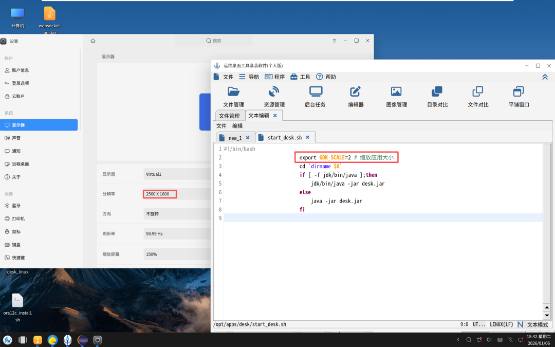 让整个界面的字体变大主要就是调整安装目录下的start_desk.sh,如下图所示。调整完成后重新启动软件即可。详细的操作之前写过,请参考倚天剑术49--信创环境下调整界面大小。