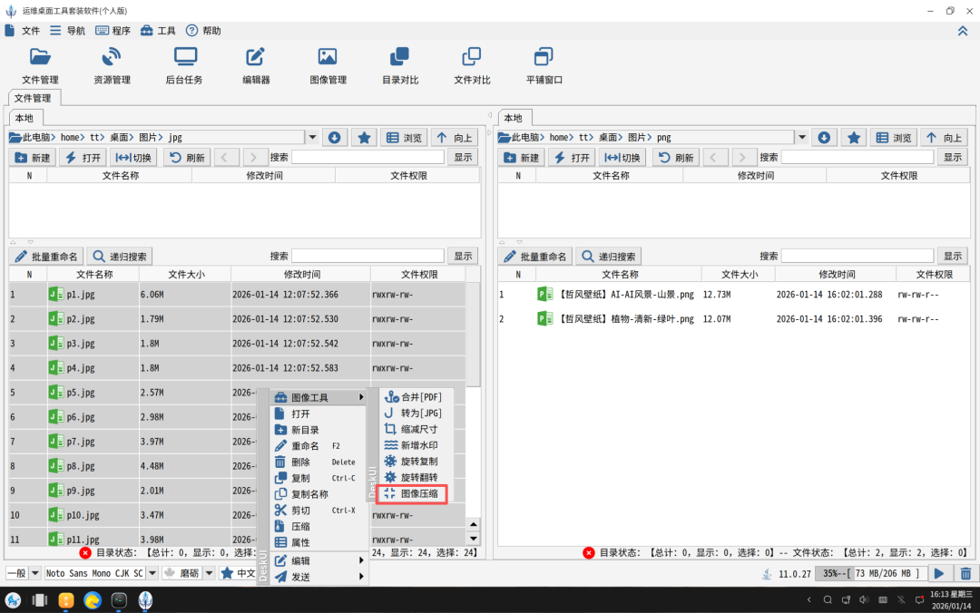 这种方式主要针对jpg格式,通过牺牲一定的清晰度达到压缩的目标。使用DESK操作起来非常简单。点击如下图的“图像压缩”菜单。