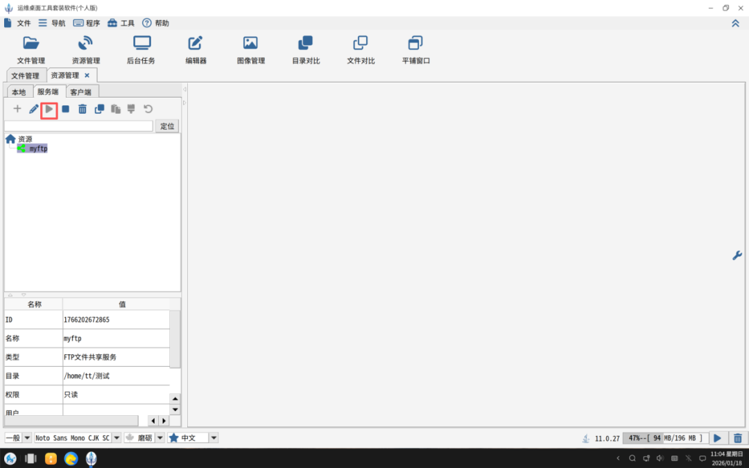 接下来,选中刚刚添加的节点,运行即可。FTP的服务器就搭建完成了,简单吧?