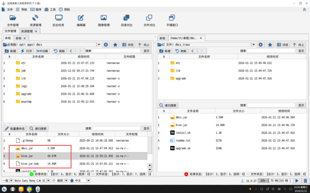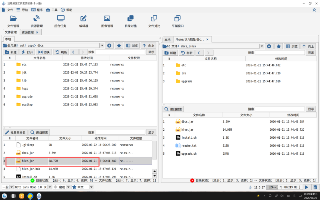 然后把下载的驱动放在DBCS的安装目录中,把之前叫做hive.jar重命名为hive.jar.bak,把腾讯的驱动重命名为hive.jar。如下这个快70M的驱动,就是你刚才下载的驱动。