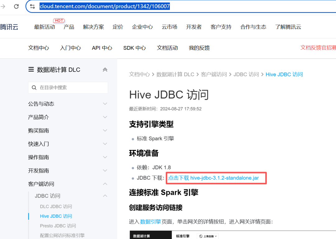 遇到如上情况,先去腾讯网站下载标准的腾讯数据湖驱动