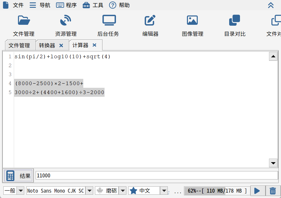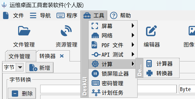 选择“工具”->“计算”菜单就能打开计算器和转换器