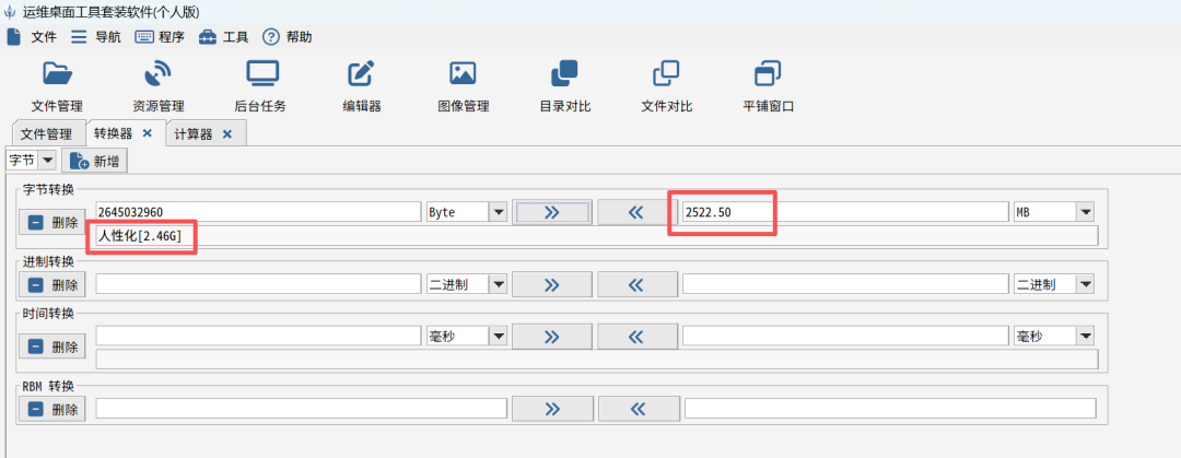 通过字节计算器,我们立刻知道这个数是2.46G, 2252.5M。如下图: