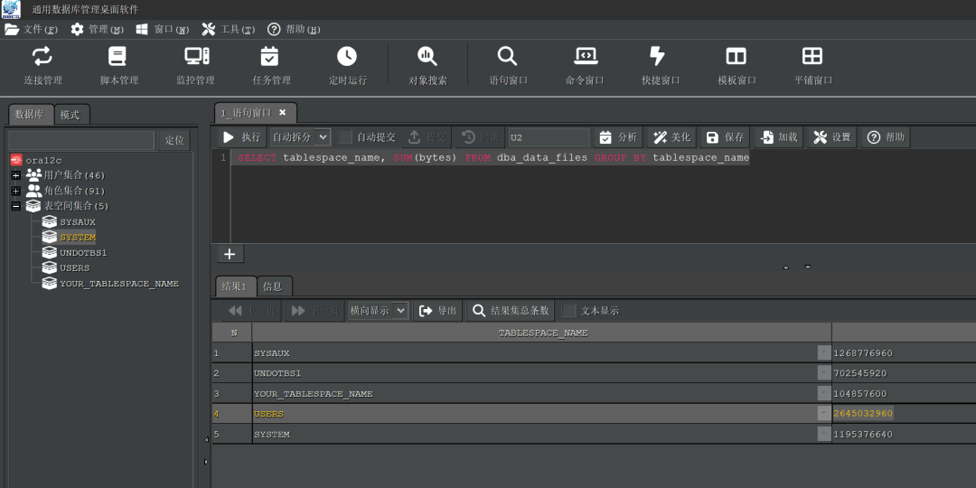 字节转换器经常用于编程或者查询数据库的时候,出现了一个很大的字节数,如下图USERS表空间为2645032960个字节。看到这个数字,大家是不是很难受?