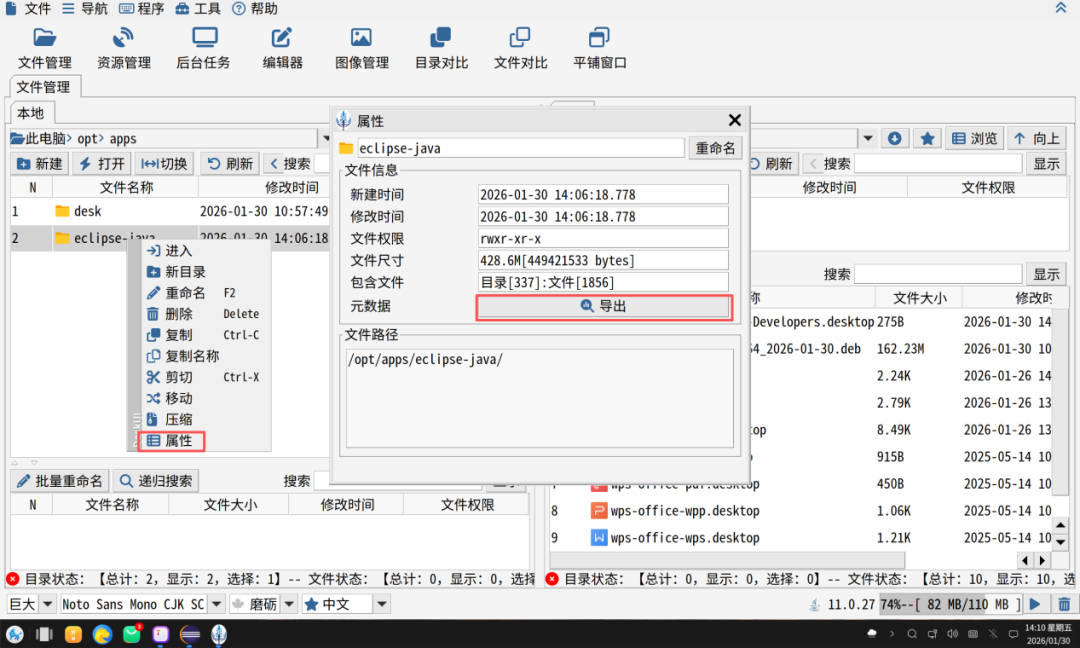 说实话使用过程太简单了,简单得我都不好意思说,因为其实就一个操作。你只需要选中文件夹的属性菜单,然后点击“导出”按钮,如下图所示:
