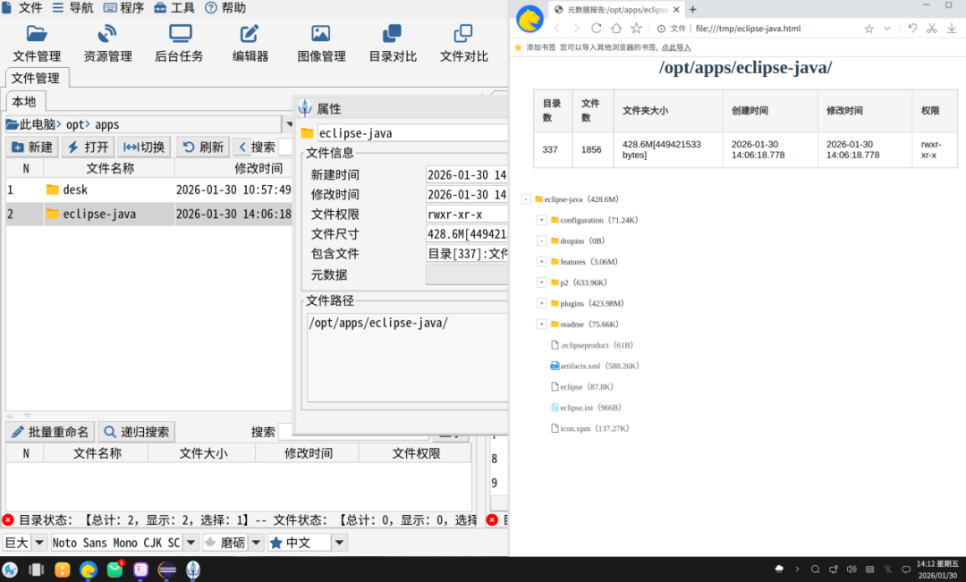 接下来系统会把报告用浏览器打开,如下图所示337个文件夹和1856个文件,到底是什么目录结构,每个文件到底多大,全部保存在一个html文件中。