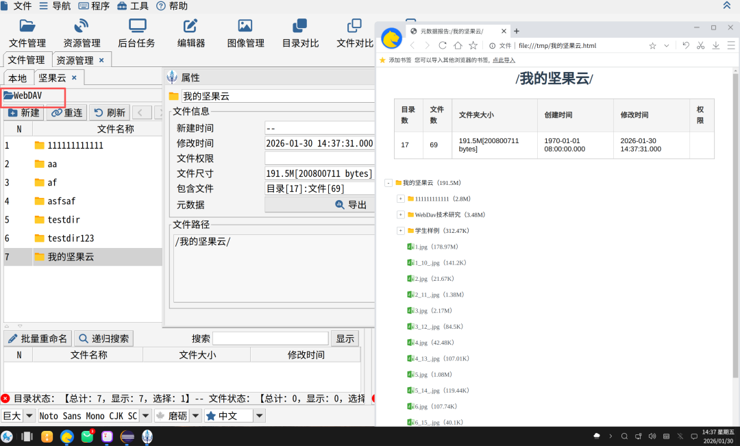 如下图所示:通过WebDAV协议导出坚果云上的元数据报告