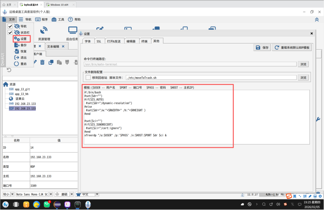 Remmina配置比较复杂,但他不支持模板配置。
