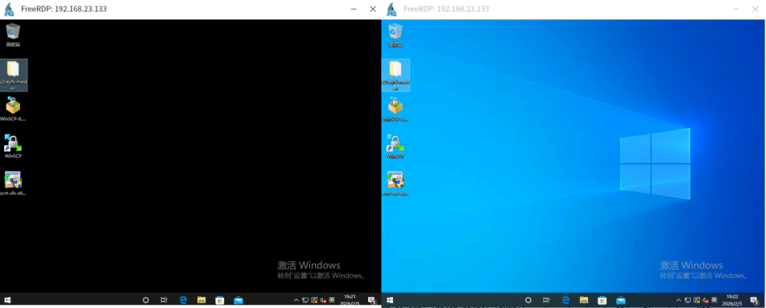 xfreerdp "/u:xxxx" /p:'xxxx' /v:192.168.23.133:3389 /cert:ignore /w:1024 /h:768 /bpp:16 -wallpaper使用/w:1024 /h:768限制分辨率,会让服务器传到客户端的图像更小,分辨率越小传输越快。