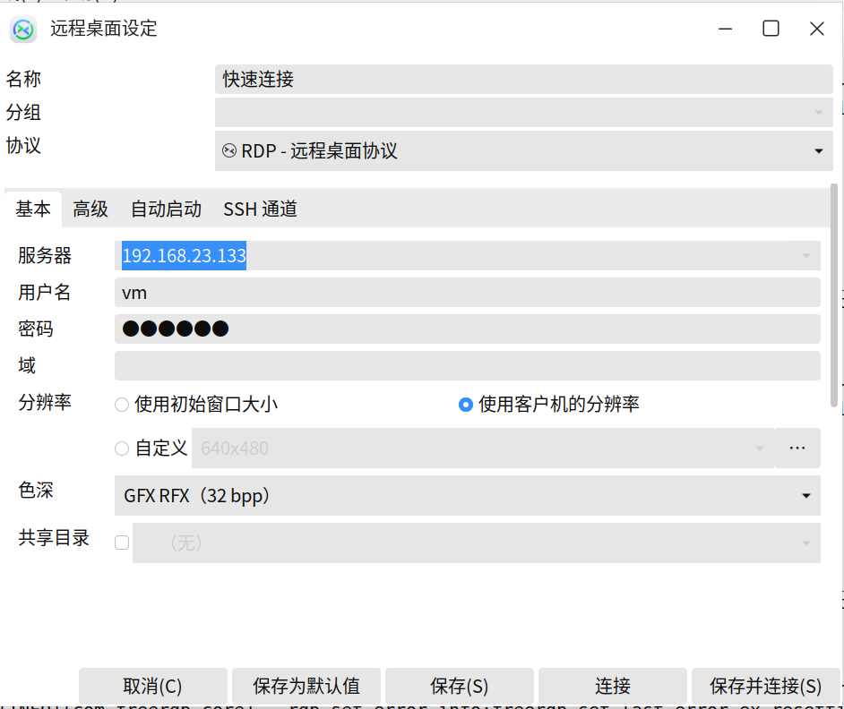 xfreerdp "/u:xxxx" /p:'xxxx' /v:192.168.23.133:3389 /dynamic-resolution /cert:ignore场景2:网络不好用如下命令