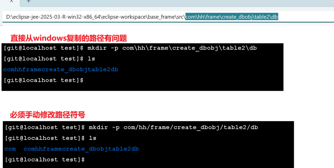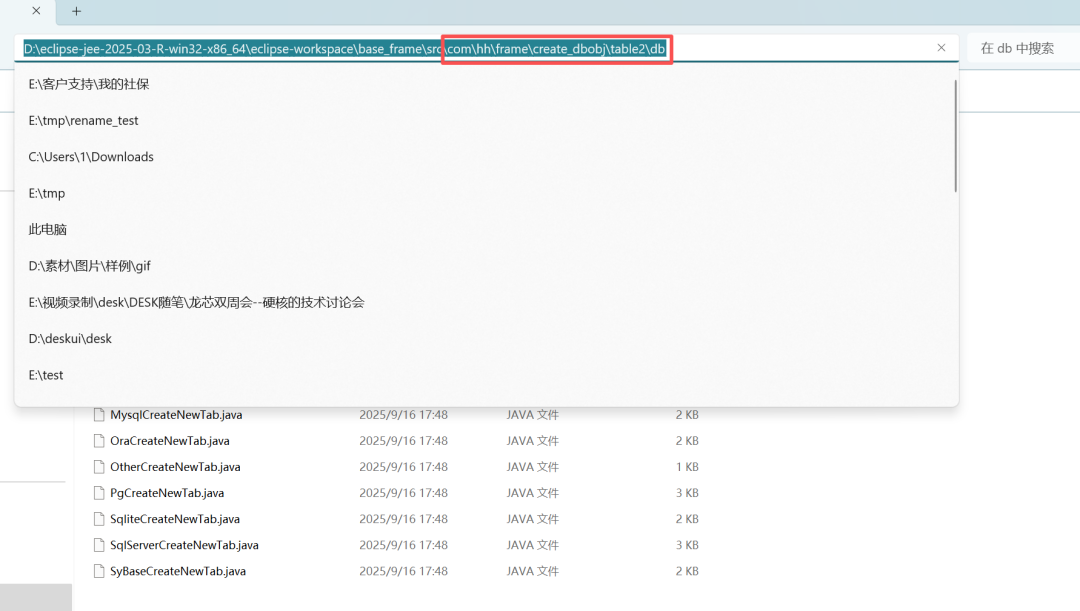 很多人会感到奇怪,创建文件夹这个功能太简单了,有什么细节好比拼呢。以笔者为例,作为java老程序员,我经常需要级联创建多个文件夹来适配java的包结构。也就是把如下图的“com\hh\frame\create_dbobj\table2\db”这个级联目录一下创建在某个服务器上。