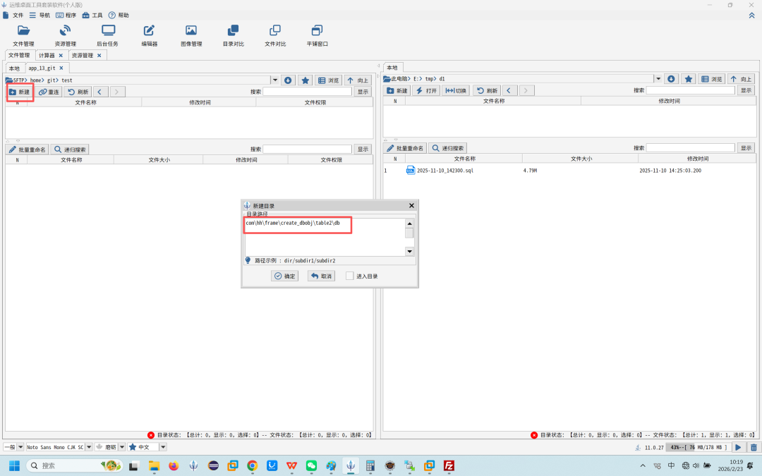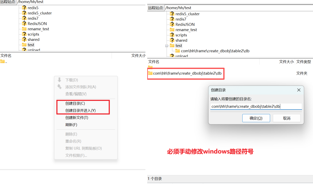 如此看来命令行还是不好,还是要找个好点的方案,所以再看看FileZilla吧。 FileZilla有进步,支持多级路径创建,但是和命令行一样,必须手动修改路径符号。