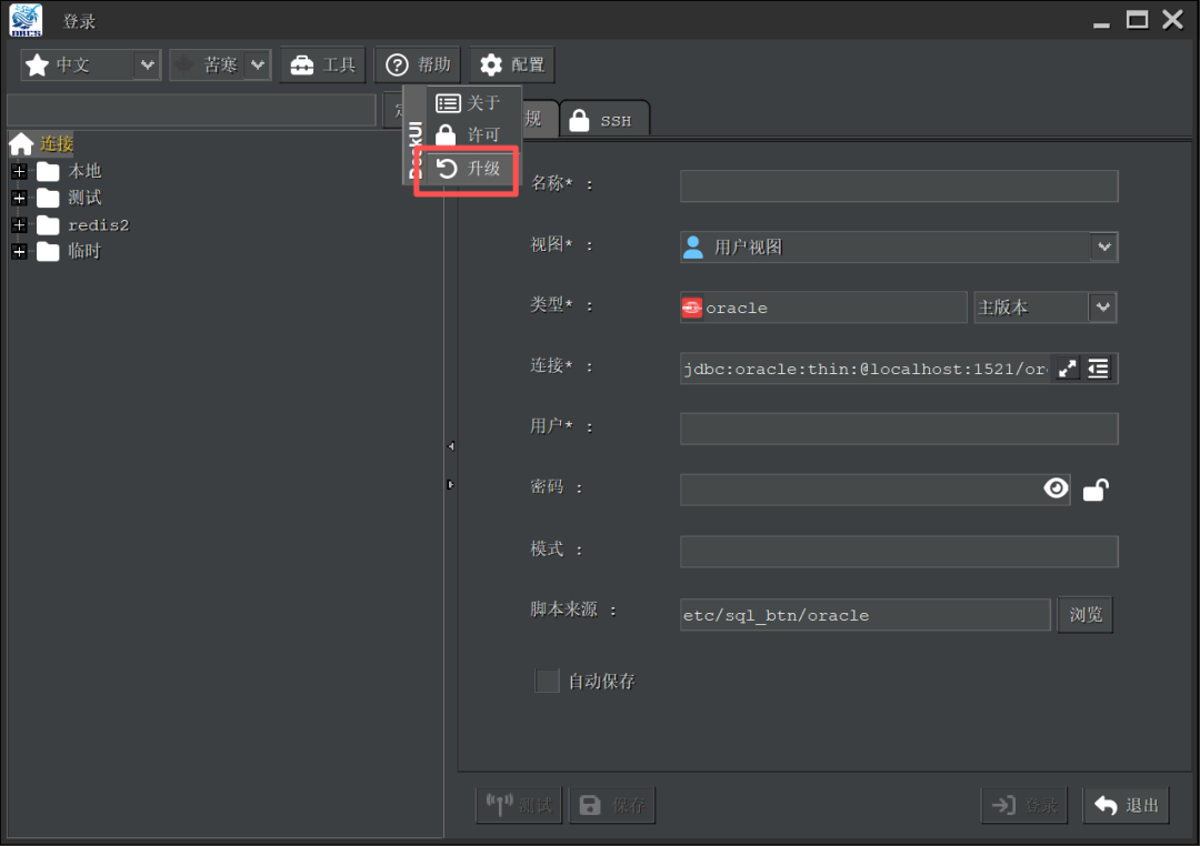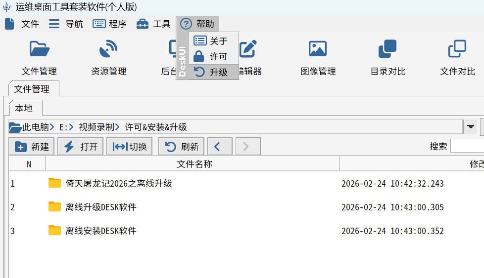 这种介质以zip文件方式进行提供,主要用于windows环境。DBCS和DESK的升级过程相同,都是点击“帮助”菜单的“升级”子菜单。