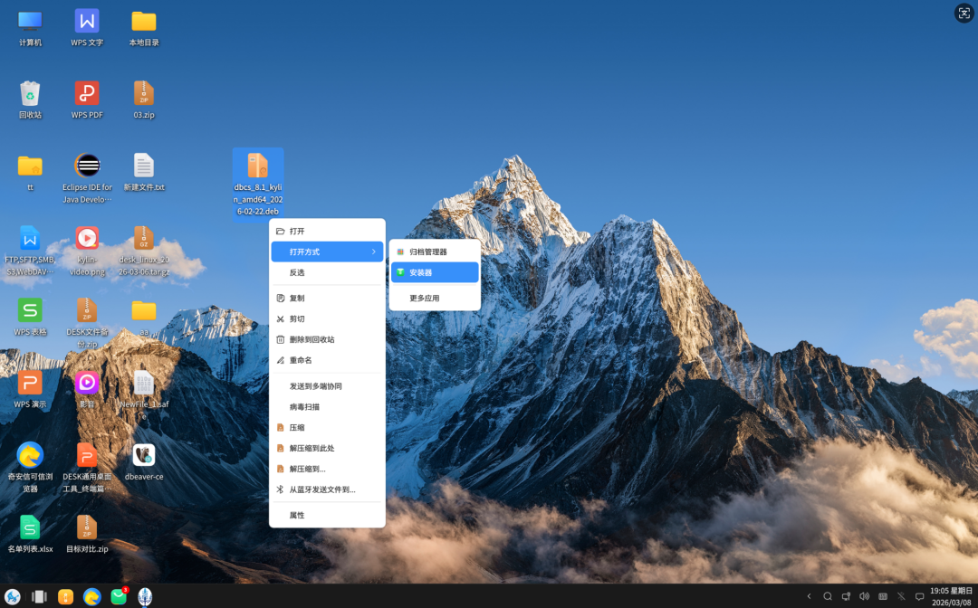 这种升级方式最适合国产操作系统内部商店,因为只需要把商店中的安装介质进行替换后,通知大家进行升级即可。使用商店升级过程和直接运行deb包的升级过程原理相同。用鼠标双击或者右键都能安装deb,如下图所示: