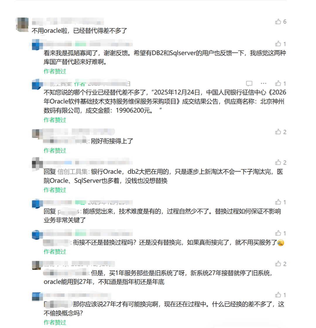 很多说会说:“麒麟系统下不需要管理Oracle,因为Oracle早已经被换掉了”。其实这个问题争议非常大,下图来自笔者之前文章的留言区: