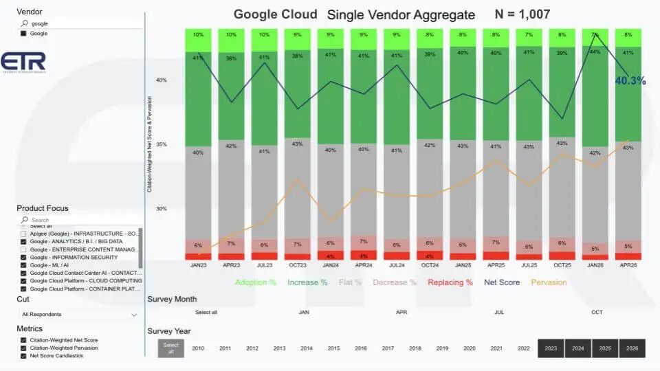 在本突发分析中——在下周的 Google Cloud Next 之前——我们更新了对谷歌云的场景。我们将涵盖市场势头,使用企业技术研究(Enterprise Technology Research)数据审视支出信号,并以我们在 Google Cloud Next 2026 上关注的事项结束。