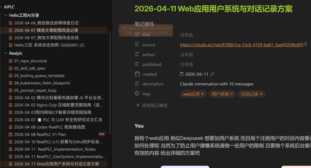 说实话,我个人在使用过Obsidian这款笔记软件后,真的基本是把它做成个人的百科,也会每天把和AI的交流过程记录在这里。