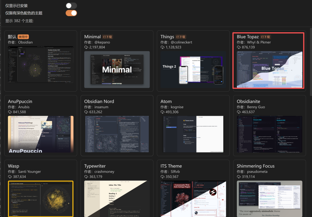 第四:下载并使用主题。选择合适的主题,下载并使用即可,我自己喜欢的是图中的Blue Topaz,选择下载并使用后,回到软件后: