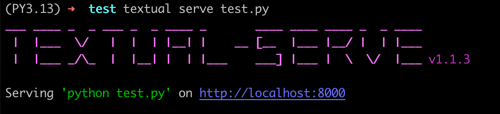 textual serve 你的代码.py这时就能看到服务器脚本开始运行: