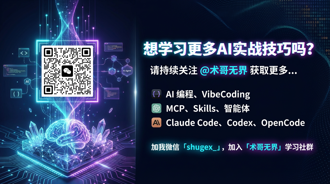我是术哥,一名专注于 AI 编程、AI 智能体、Agent Skills、MCP、云原生、AIOps、Milvus 向量数据库的技术实践者与开源布道者!
