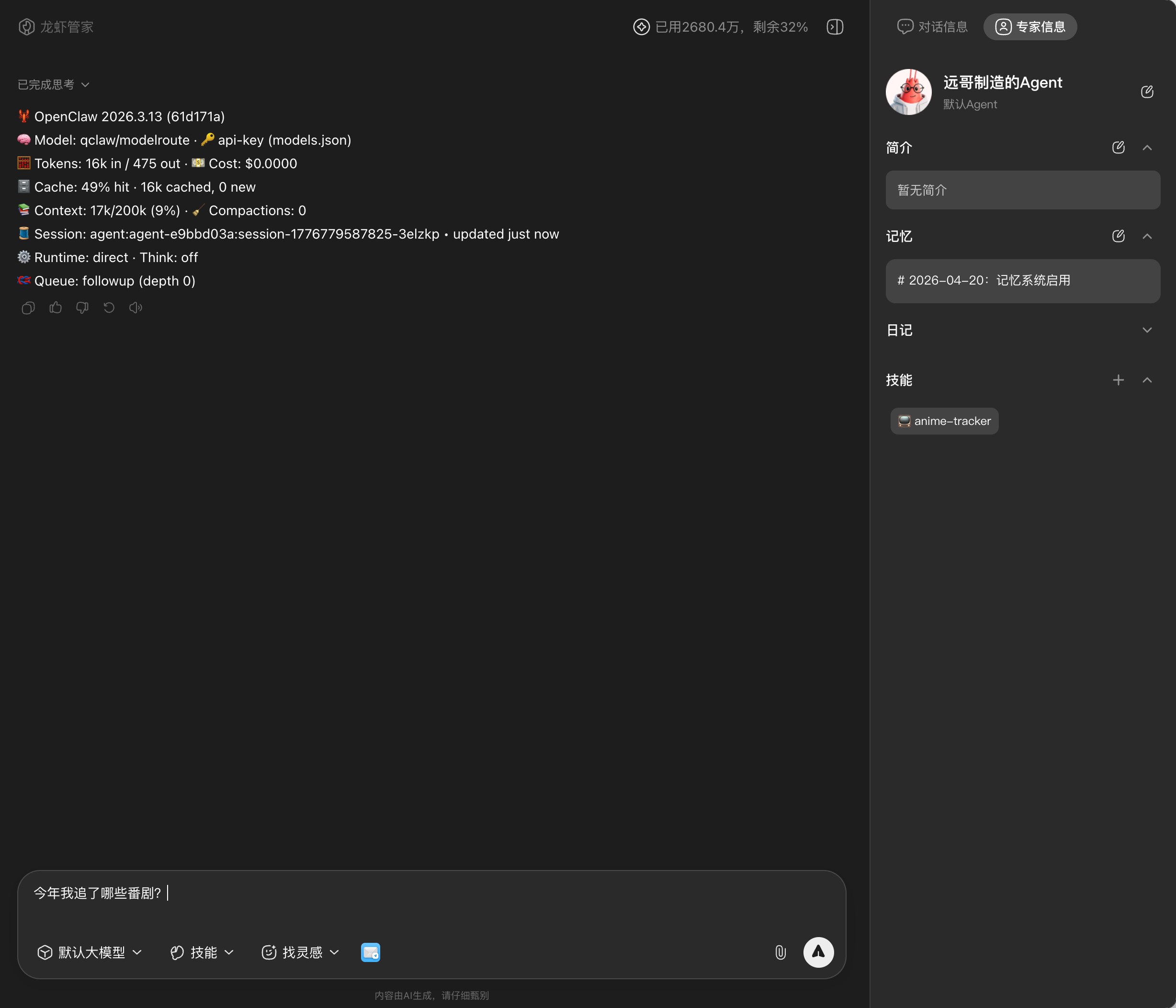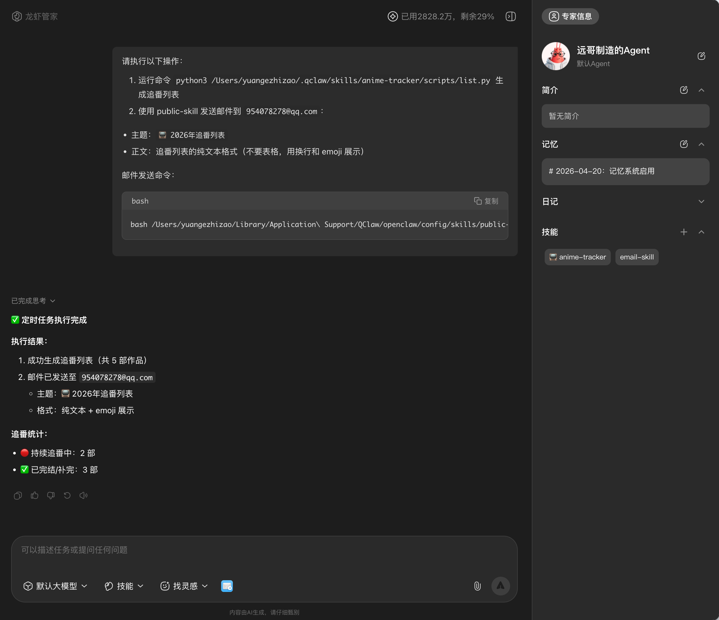 最近看到云 + 社区出了 QClaw 的征文,其中脑洞名场面包含用来管理追剧/追番进度的场景