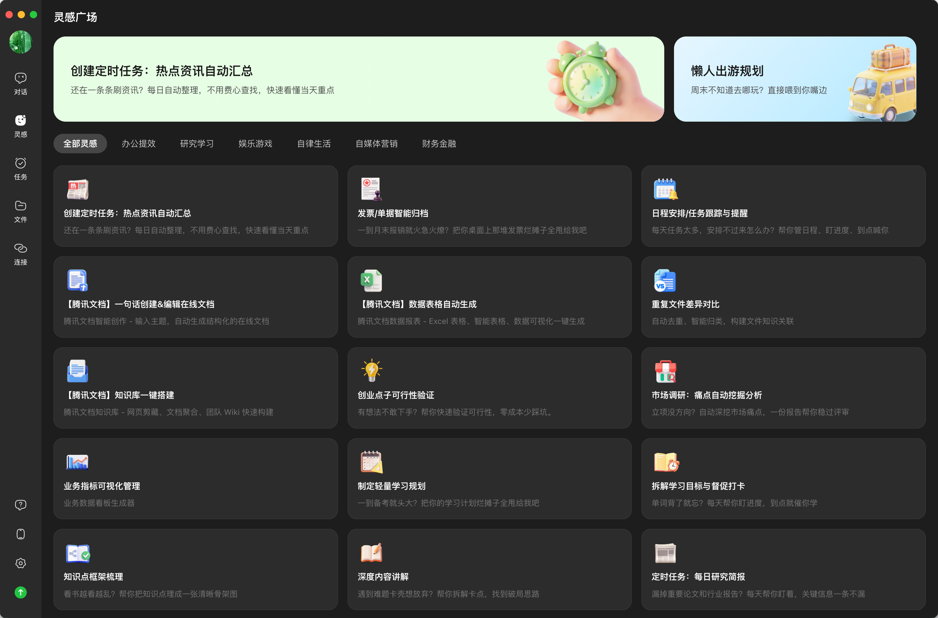 对于常见的需求都可以实现,内置了非常丰富的技能,还可以在【灵感广场】中直接获取他人分享的”灵感“~