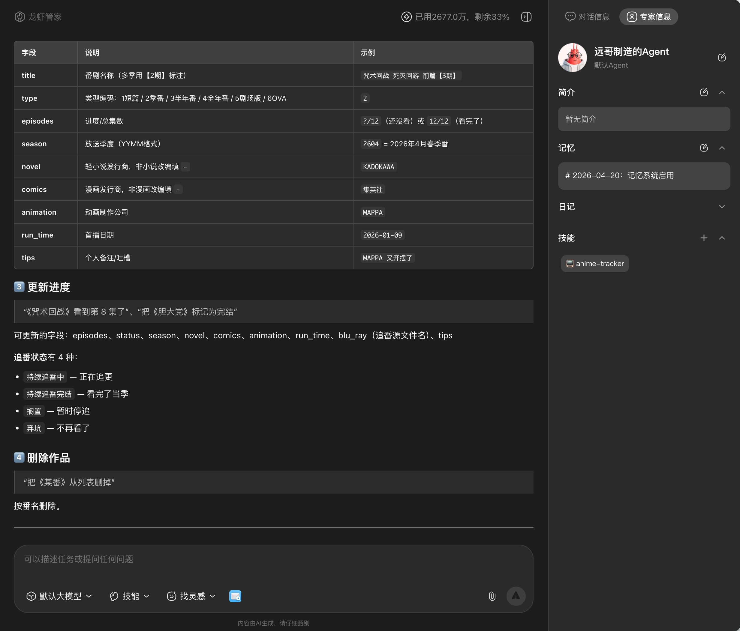 有了这些信息,不难创建出一个 anime-tracker 技能