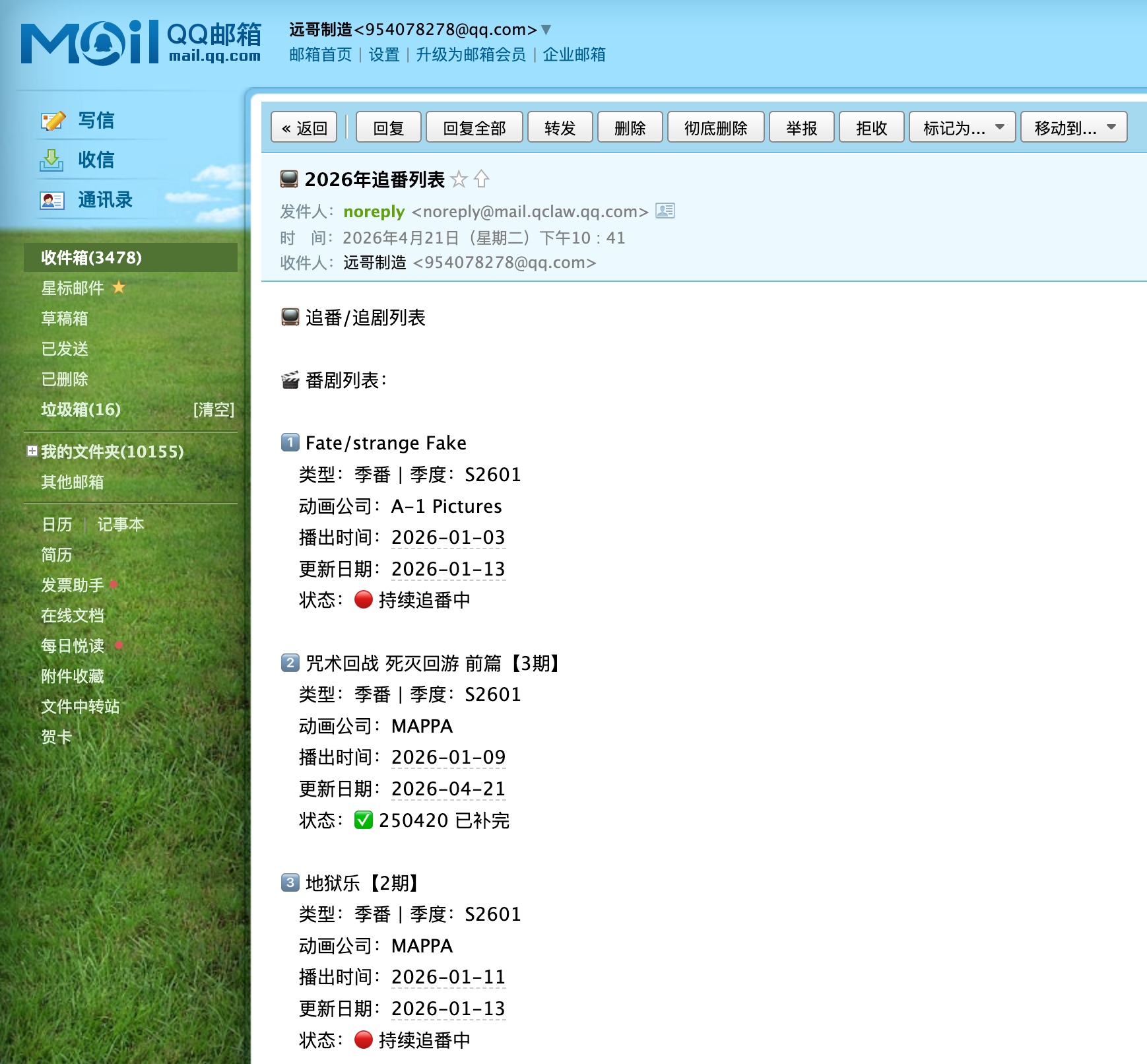 正巧自己很久没有维护追番的页面了,于是决定趁此机会使用 QClaw 实现新一代的追剧/追番进度管理