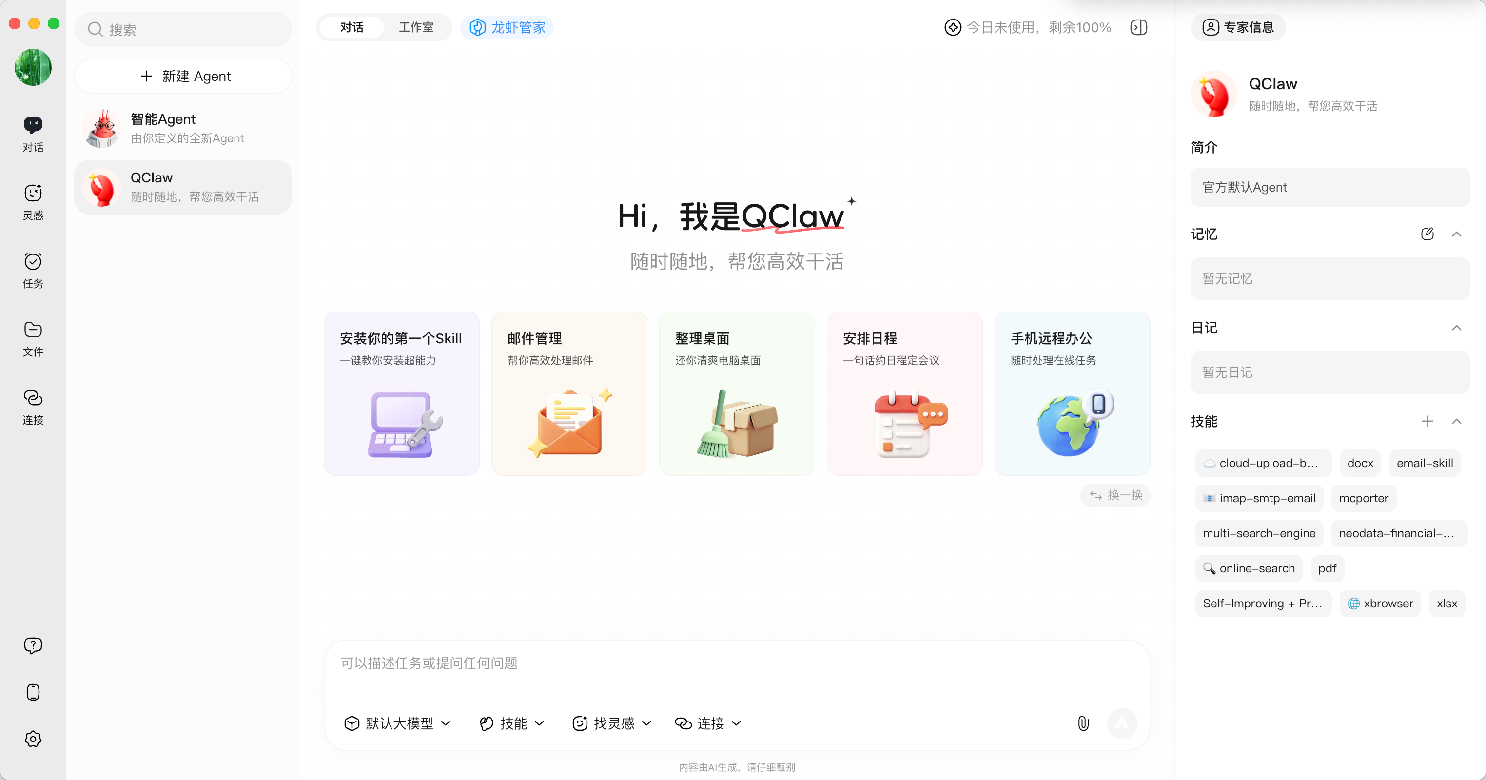 1. 封装了 OpenClaw 的 QClaw 实际用起来非常方便,不用折腾联网下载,开箱即用