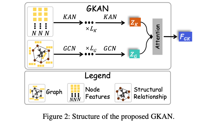 GKAN通过并行路径架构实现结构建模与非线性特征解耦的联合优化。