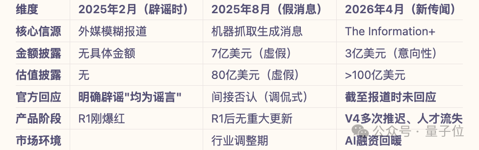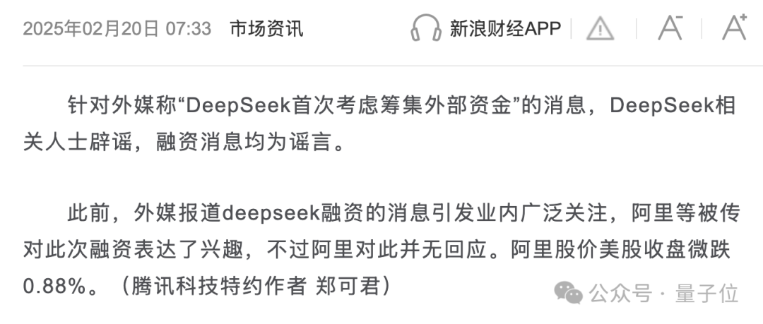 DeepSeek融资传闻并非首次出现,最早可追溯至2025年2月,当时的消息是“阿里巴巴等科技巨头被传表达投资兴趣”,DeepSeek明确回应“融资消息均为谣言”。