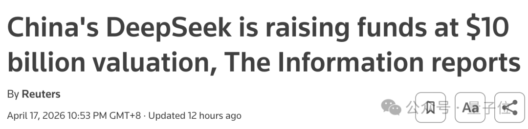 参考链接: [1]https://www.reuters.com/world/china/chinas-deepseek-is-raising-funds-10-billion-valuation-information-reports-2026-04-17/