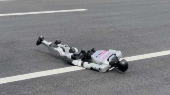 看下面这小机器人,直接就是一个灵活翻身+鲤鱼打挺,分分钟直接丝滑起身,帅炸了帅炸了啊~