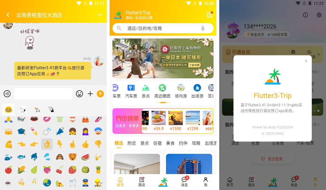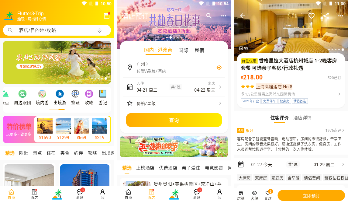 基于flutter3.41+dart3.11+get+cached_network_image构建高颜值旅行酒店预约app程序。