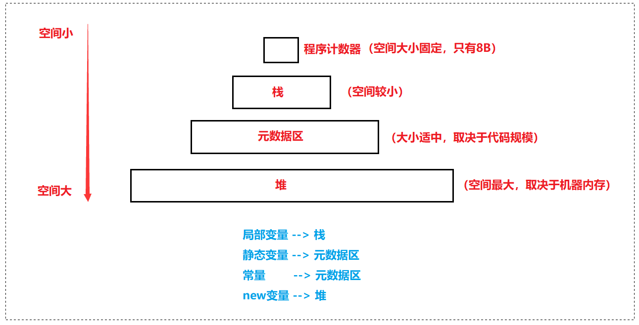 方法区(Method Area) | 存储类的信息(类元数据)、常量、静态变量等 |