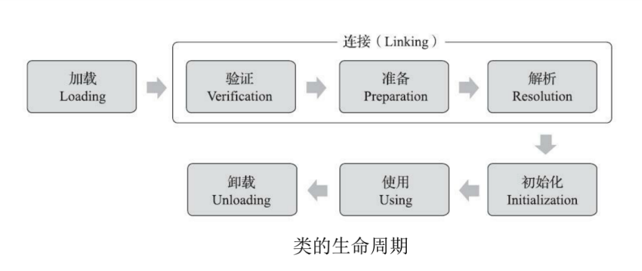 类加载是 JVM 把 .class 文件(字节码)加载进内存,并在内存中生成一个 Class 对象的 全过程,包括下面三个主要阶段: