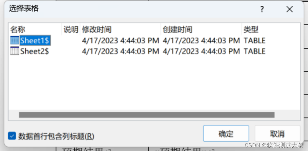步骤5,选择测试用例所在的sheet页,点击“确定”按钮;