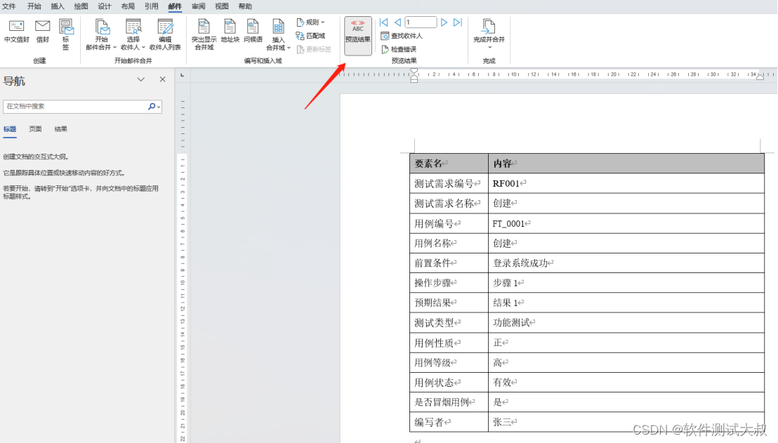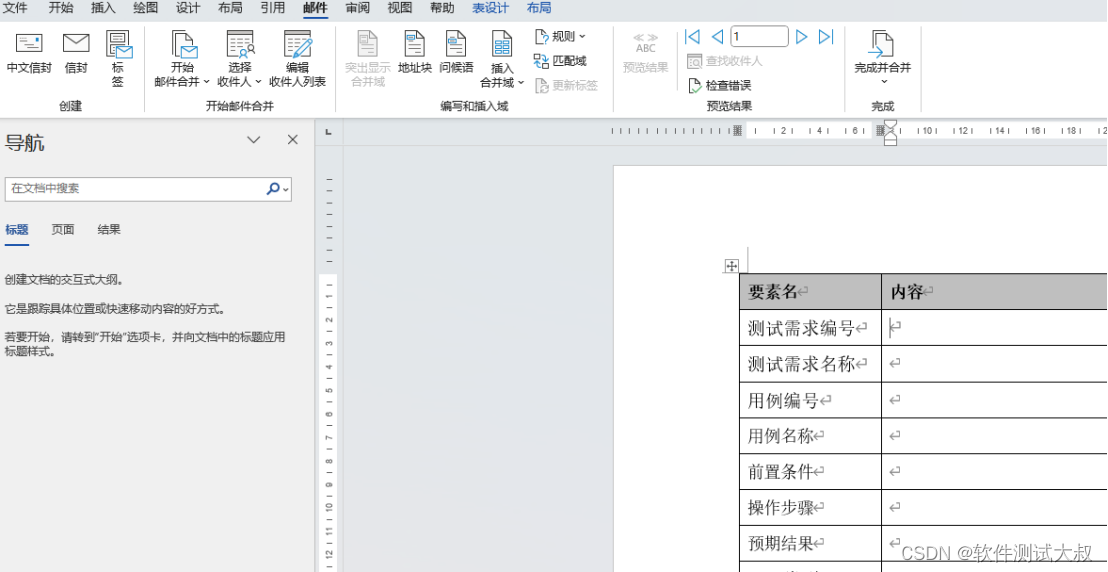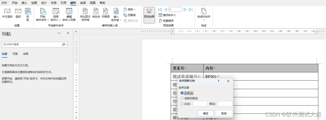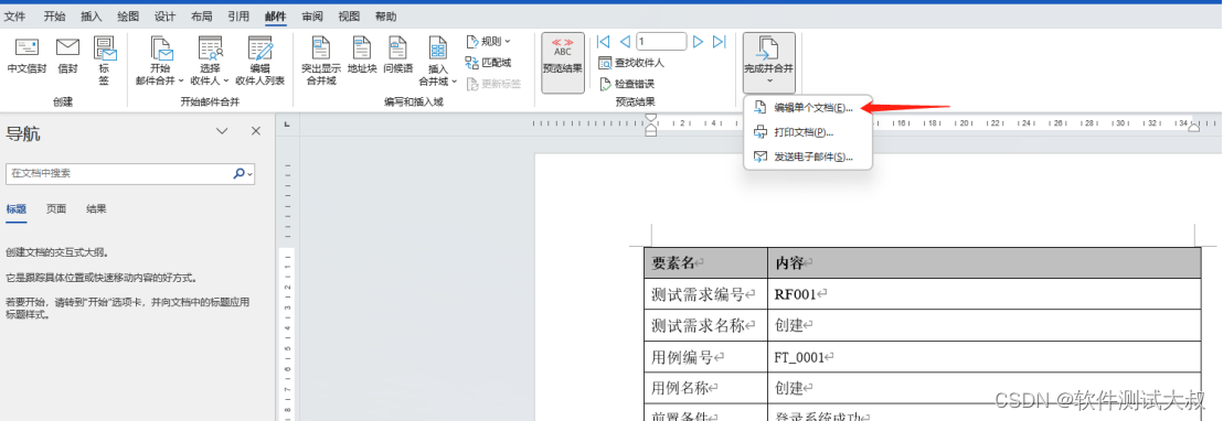 这里我们采用微软Office Word的“邮件合并”功能,快速将Excel的测试用例转换为Word表格。