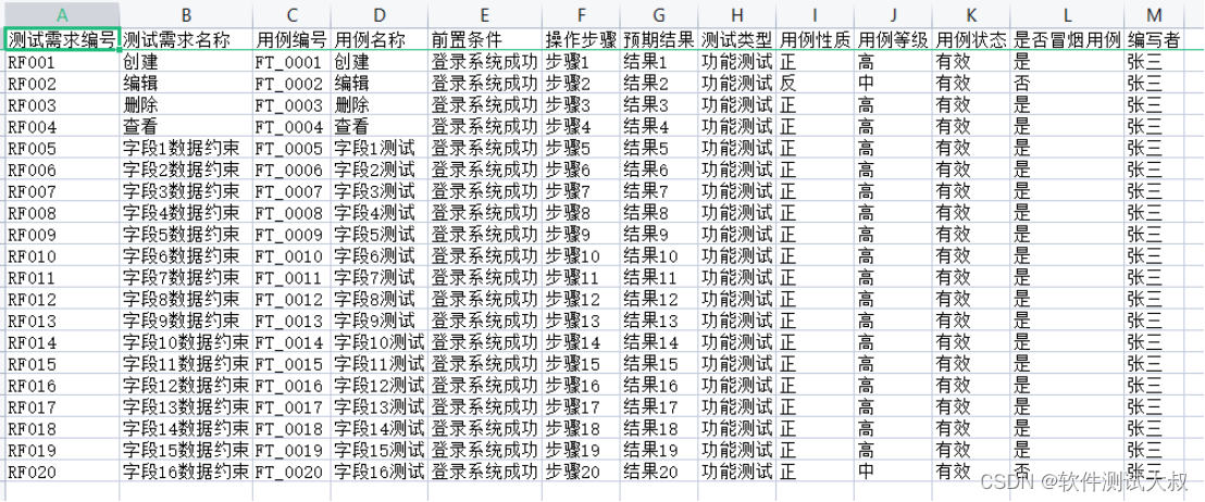 步骤2,按word文档要求,修改excel用例。注意,excel用例字段,必须包含步骤1表格中的字段;我这里是把字段修改成完全一致。