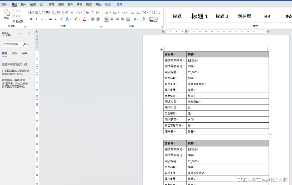 这个时候数据量大的话,需要等待一会,就会看到合并好的word表格文档啦。(这个步骤office word比WPS还是要快不少的。)可以把生成的这些word用例表格,copy到测试用例文档的对应章节中啦。