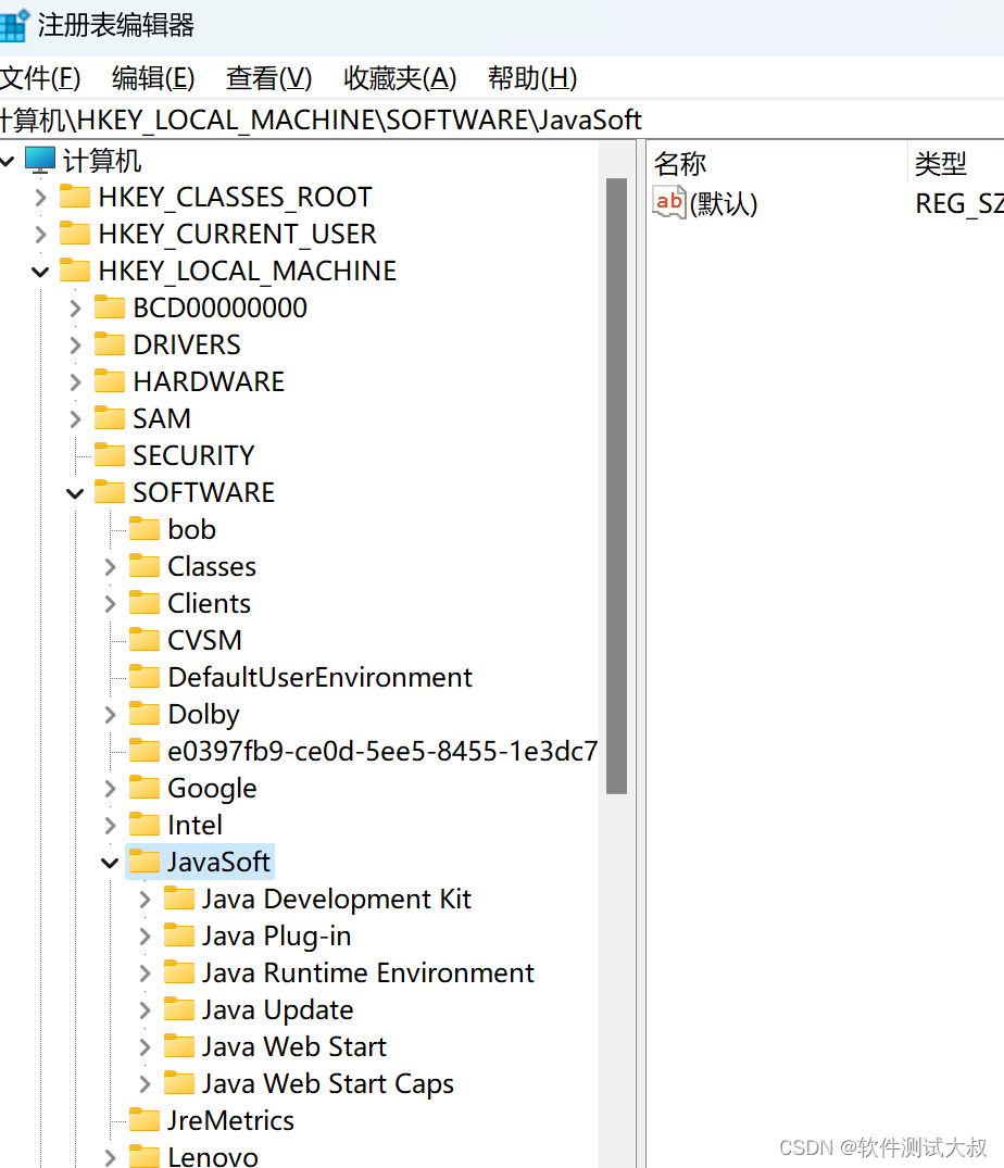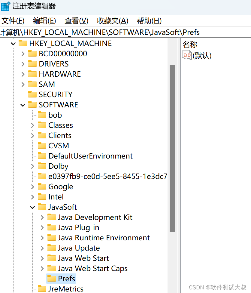 解决前,在HKEY_LOCAL_MACHINE\SOFTWARE\JavaSoft下是没有Prefs配置项的