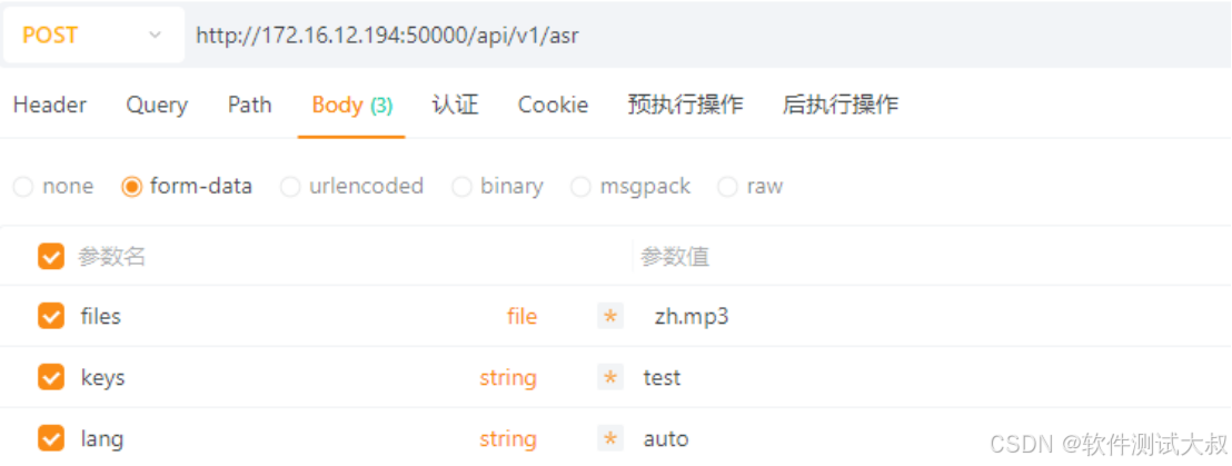 使用postman/APIpost工具调用接口进行语音转写